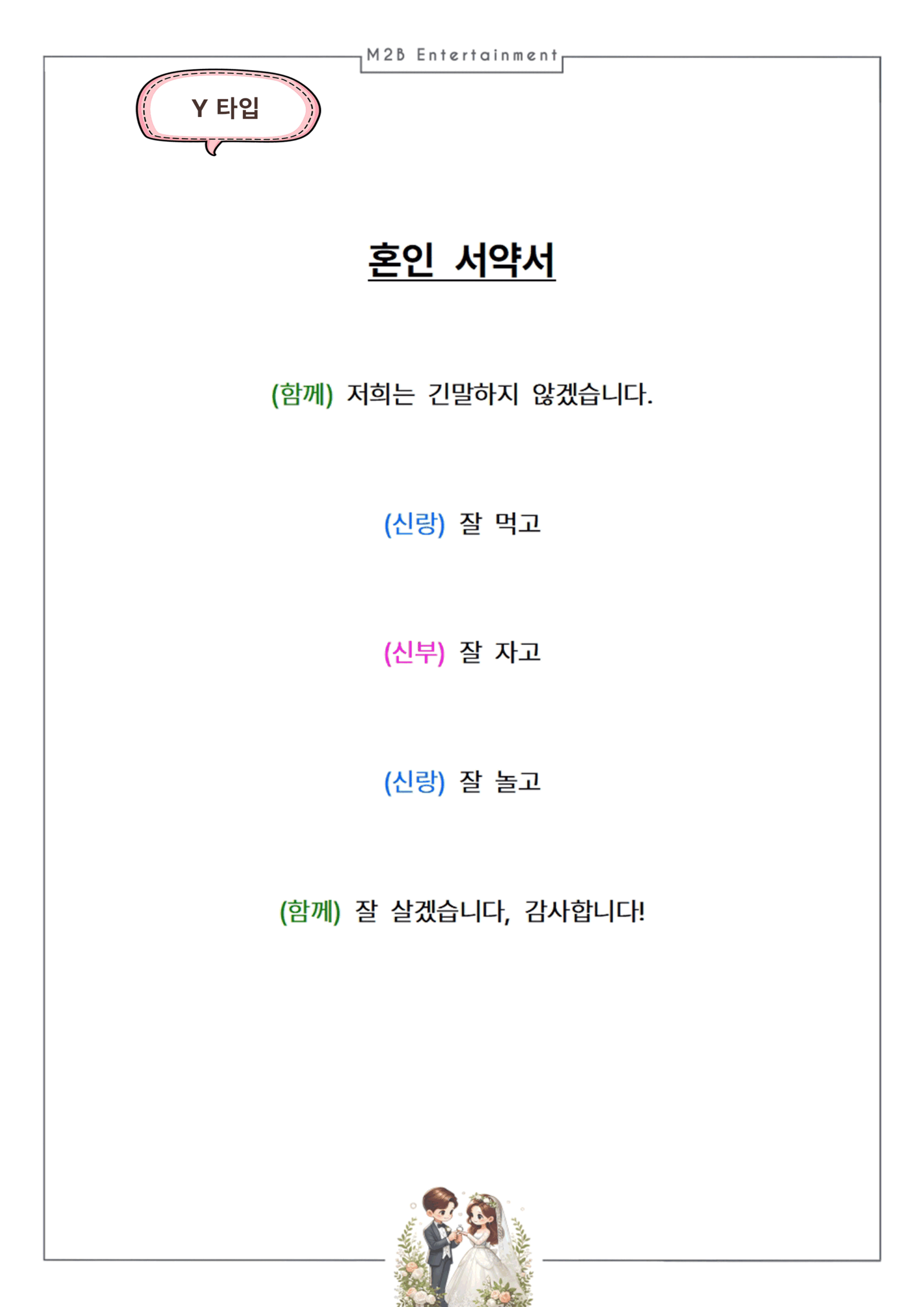 혼인 서약서 (신랑 신부 낭독용) Y 타입
