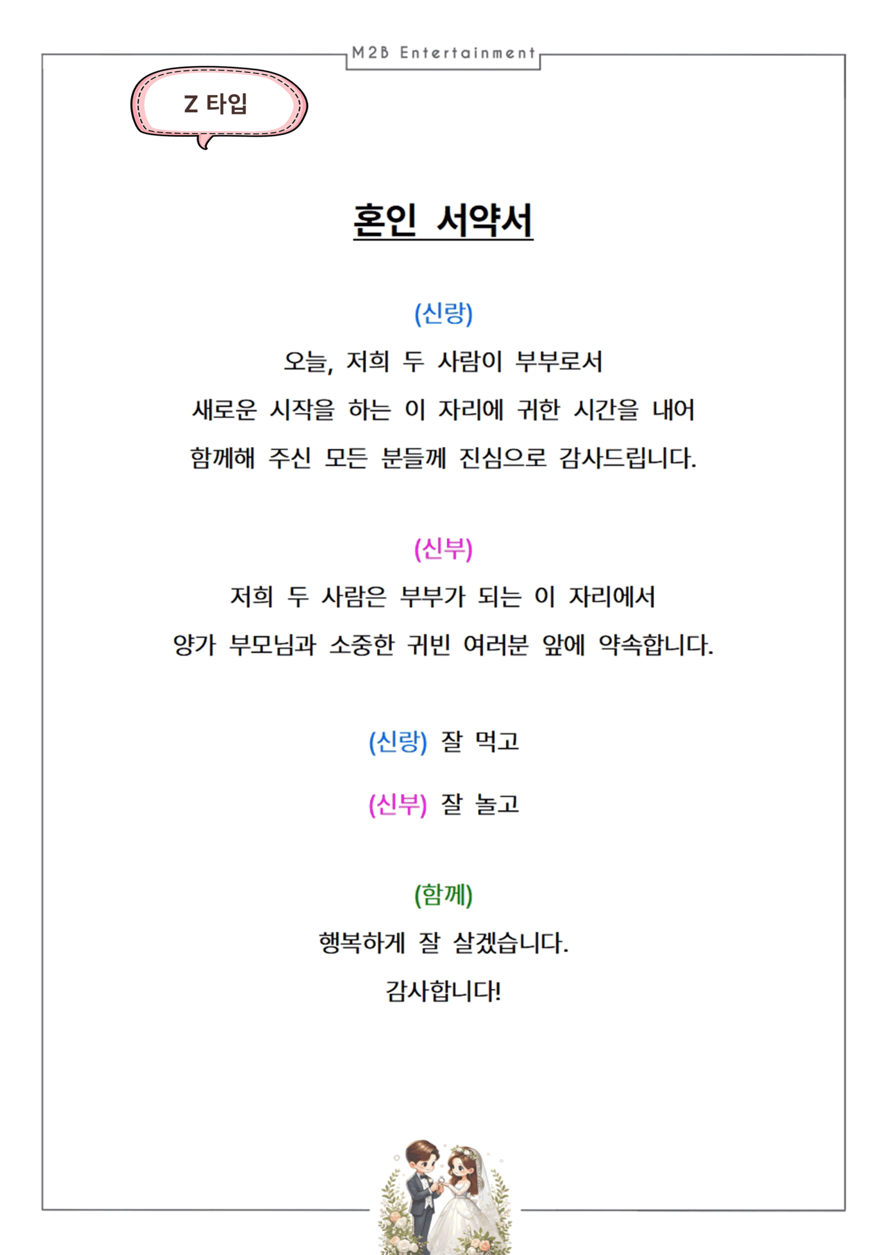 혼인 서약서 (신랑 신부 낭독용) Z 타입